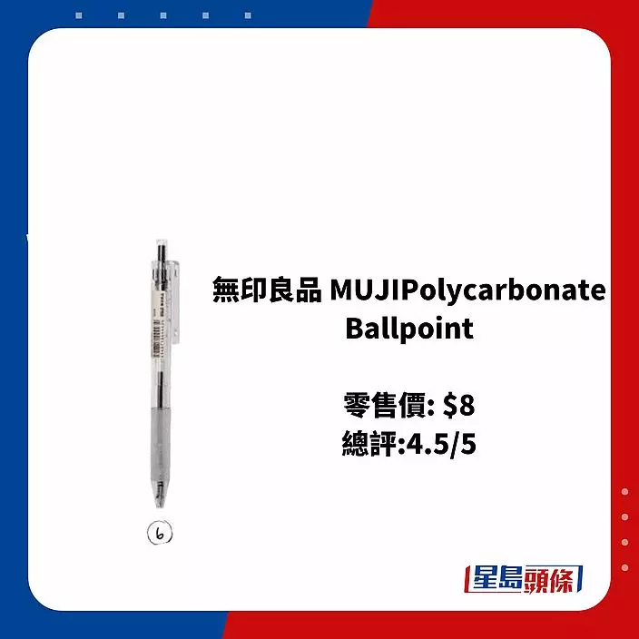 消委會18款原子筆性能評測|無印良品 MUJIPolycarbonate Ballpoint