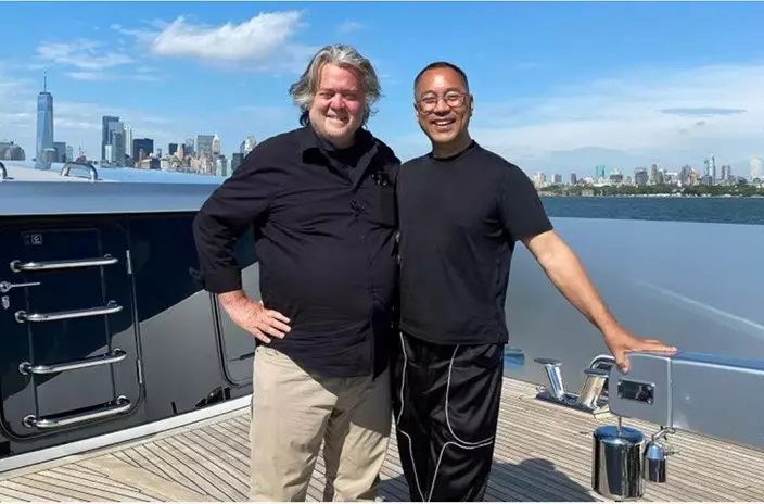 2020年8月,郭文貴的「拍檔兼合作夥伴」班農,在郭文貴的遊艇上被捕。班農被捕後,郭文貴隨即發表聲明稱,自己與班農的確在為中國爭取自由與民主上是「強大的盟友」,但強調與班農遭起訴一事沒有相干,暫不評論。