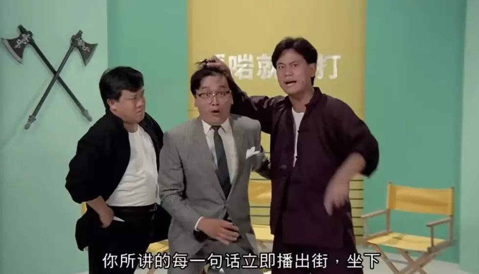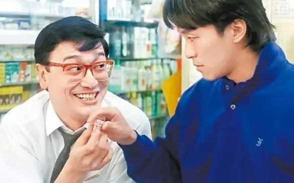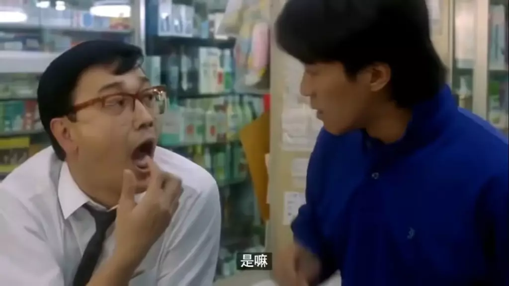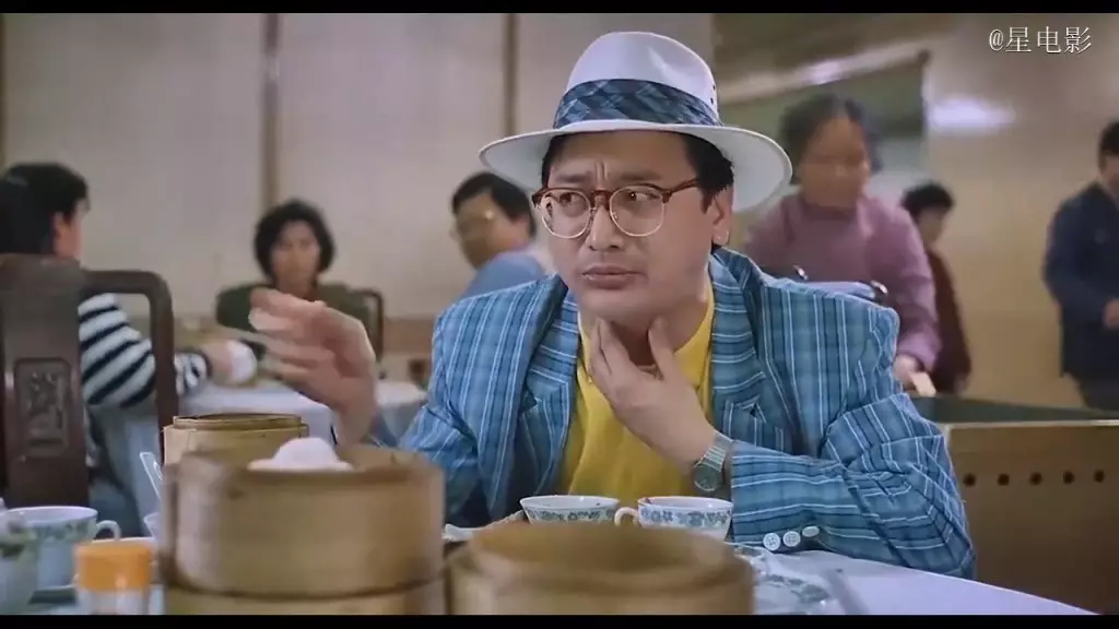 周星馳將藥拋入曹查理個口︰「你喉嚨頂有條油炸鬼?」