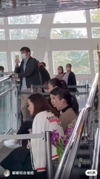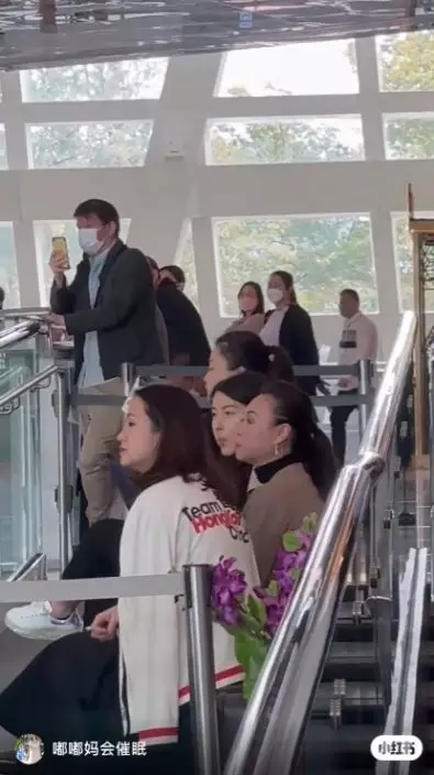郭晶晶身旁的是前中國花樣溜冰運動員陳露,有指兩人來捧陳露混血女兒安娜場。