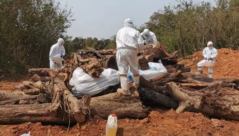 金門防疫所動物防疫人員於17日在金門縣衛生局人員監督下完成著裝,並執行預防性撲殺工作,計撲殺土雞4551隻,並就地焚燒掩埋及督導該場完成場區清潔及消毒工作,同時人員、裝備及車輛等亦完成消毒,該場周邊半徑1公里共2場禽場,已由防疫人員完成臨床檢查,未有異常情形。禽場等相關人員將由衛生人員執行後續健康照護。