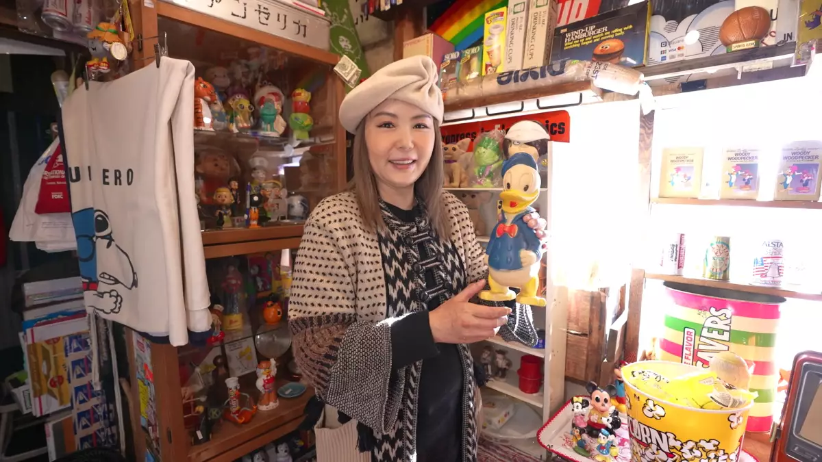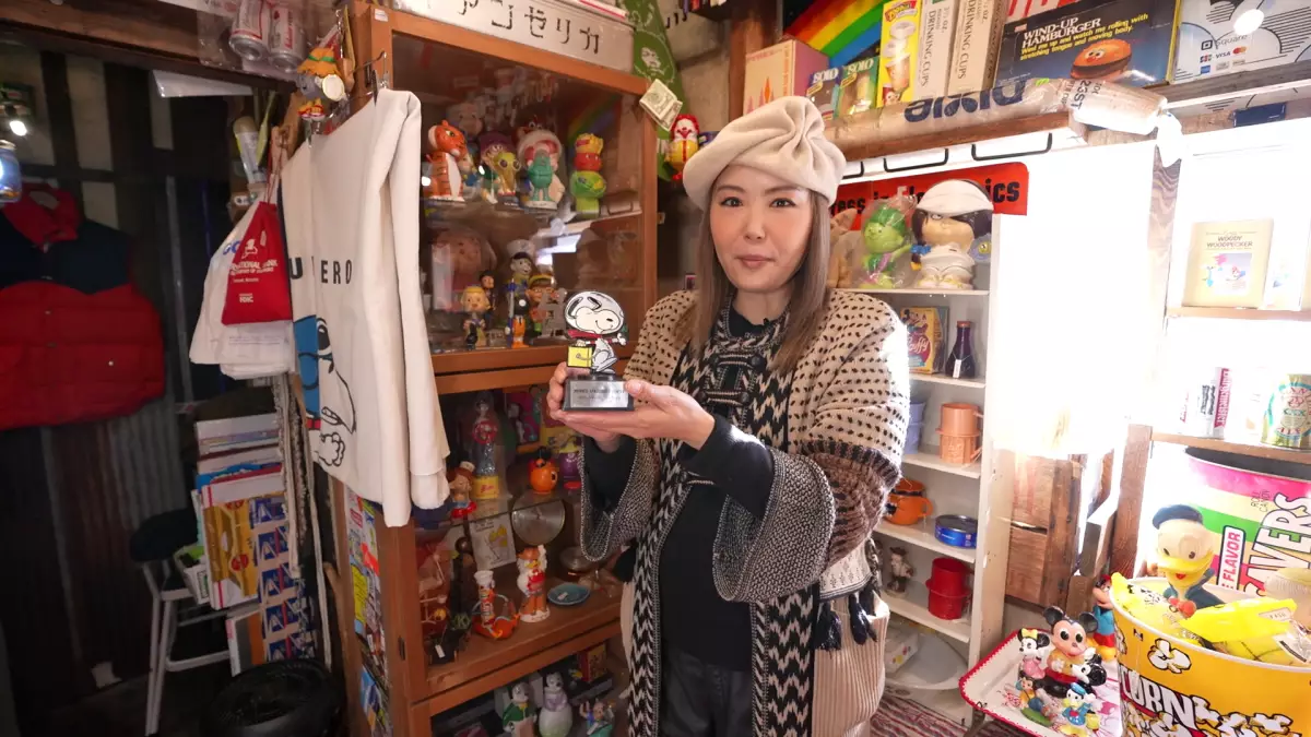 之後行程介紹一間便利店聯乘時裝店,出售各樣款式的衣物,最特別是店內的衫會放在雪糕櫃、Cap帽放凍飲櫃。Helen戴上從凍飲櫃取出的Cap帽猛叫舒服,她笑說︰「呢度乜都可以雪。該店同時推動環保,其中一款鞋用廢膠切碎再壓成,特點是該款鞋如砌模型般用6種部件拼成,壞一部份換一部份。接住Helen由市區坐個多小時車,參觀由貨倉改裝成的市集,內裏貨品應有盡有。Helen發現一款打火機套的公仔樣貌,跟鼎爺李家鼎相似度達百份百,搞到她忍不住話︰「咁一定要買個畀鼎爺做手信,仲要只係賣1,100日圓(約58港元)。」