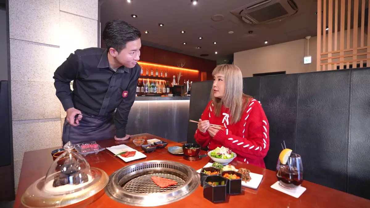 買夠玩夠自然要搵食,近日位於惠比壽的一間名為蕃Yoroniku燒肉店人氣高企,CP值極高,更入選日本美食網站8大名店之一。該店只提供晚市,必食的是「和牛燒肉盛宴」套餐,9道菜13,900 yen(約810港元),老實講一個人應該食不完。套餐的和牛已經不算特色,重點是一道由靚仔侍應親手泡製的「和牛壽喜燒配黑松露」,見到靚仔侍應出力猛刨名貴的黑松露;叉燒心形牛頸脊招呼Helen,搞到9年沒有拍拖的她忍不住問「你對我係咪有愛啫?」,至於靚仔侍應會如何回應,留意後晚《解風東京》。