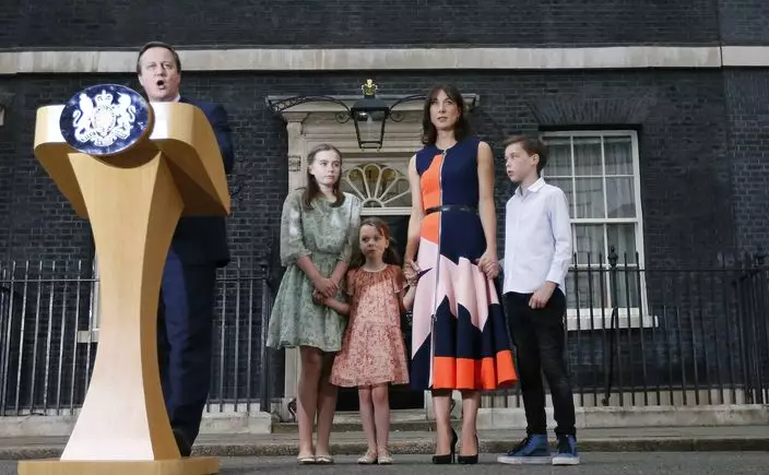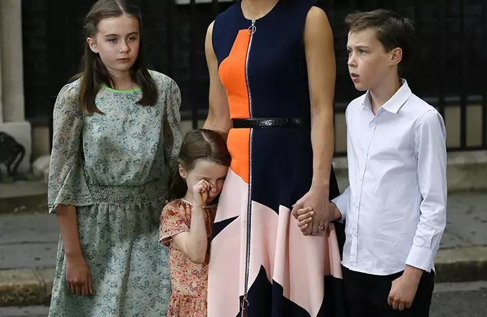 卡梅倫和太太拖著3名子女向國民道別揮別首相生涯。卡梅倫的臨別感言固然感人,但鏡頭的另一個焦點卻落在在首相府出生,今年5歲的小女兒Florence身上。