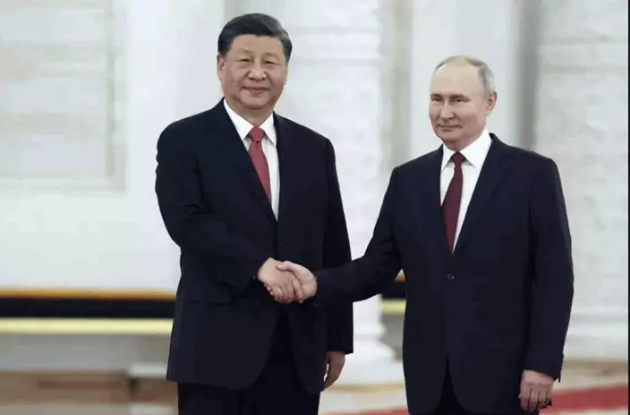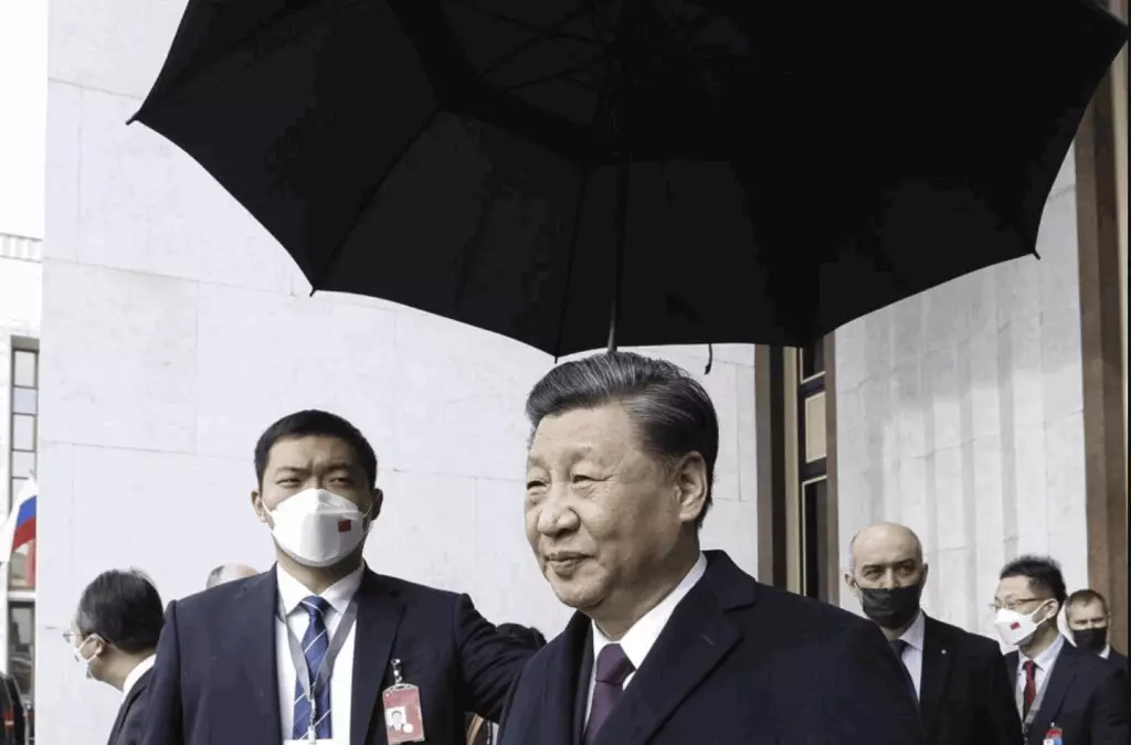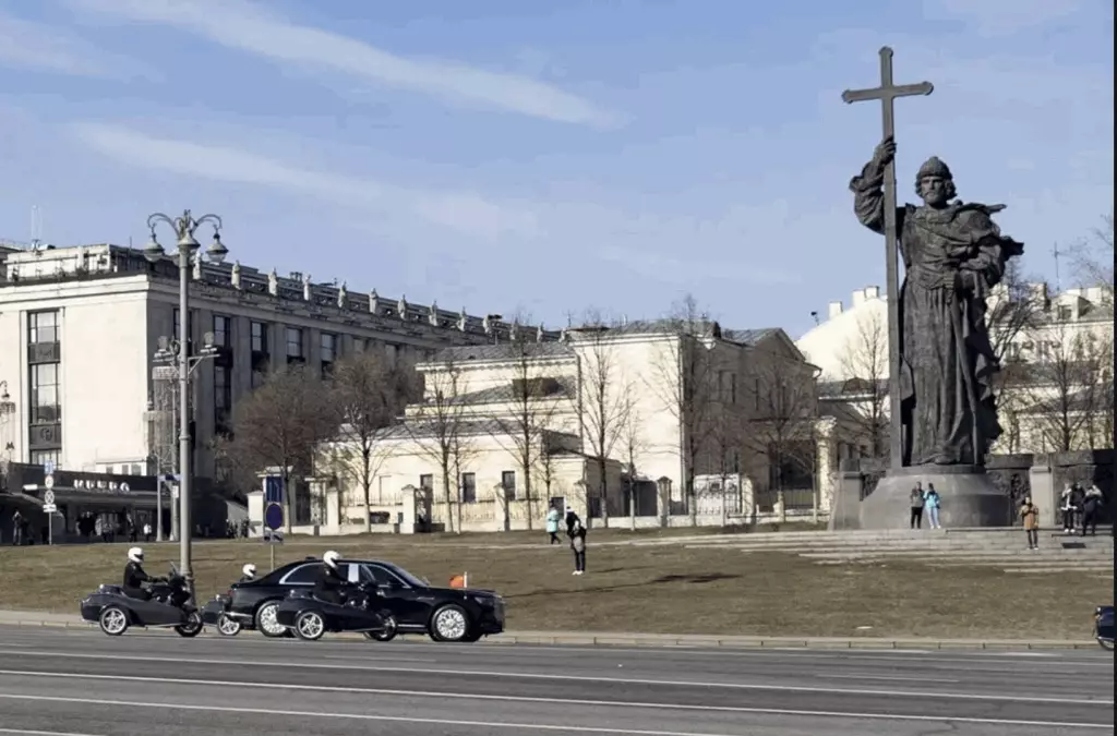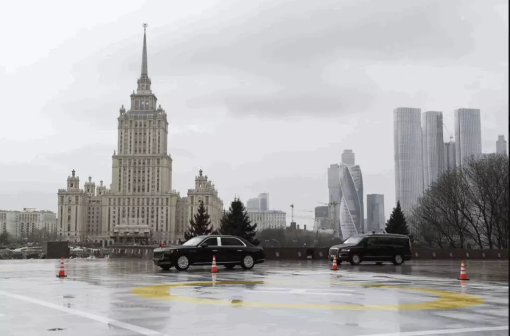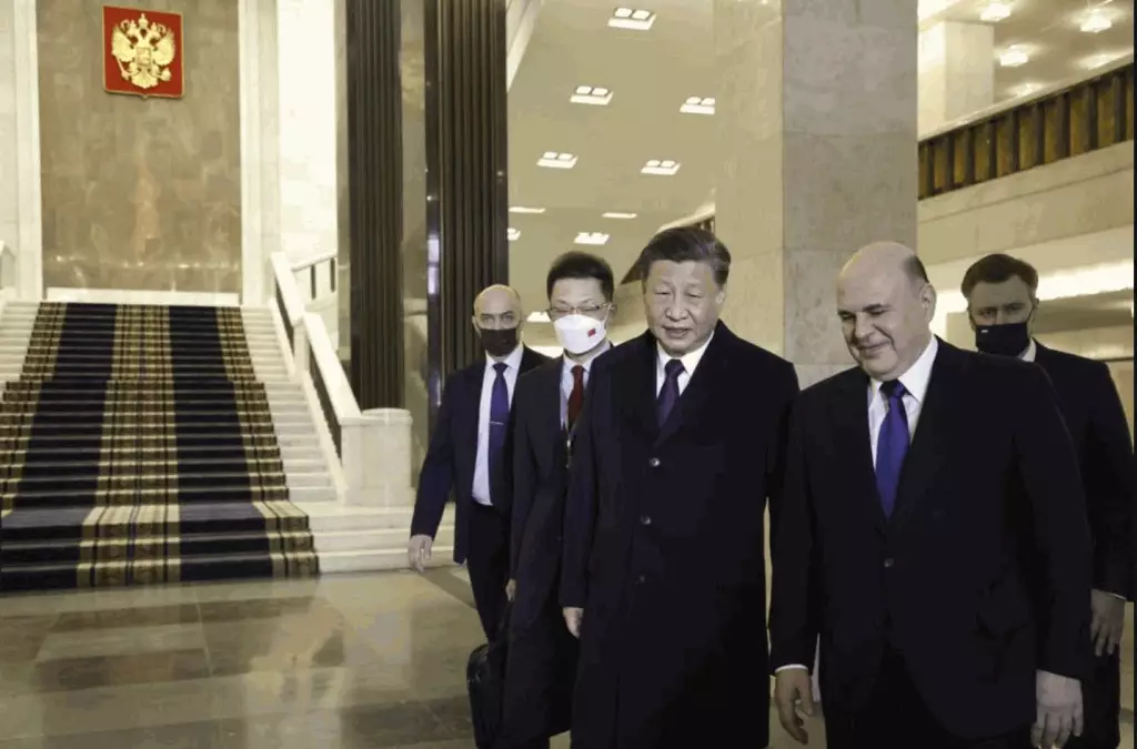 國家主席習近平在莫斯科與俄羅斯總理米舒斯京會談後,車隊駛向俄羅斯政府大樓。美聯社