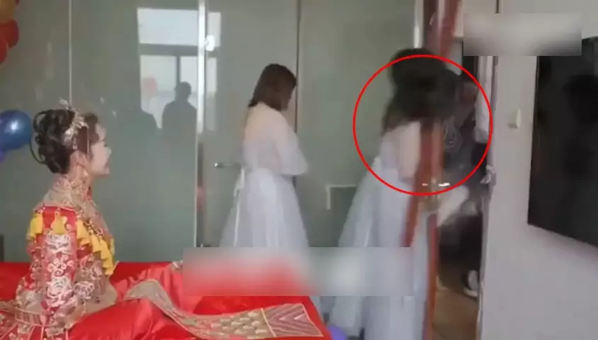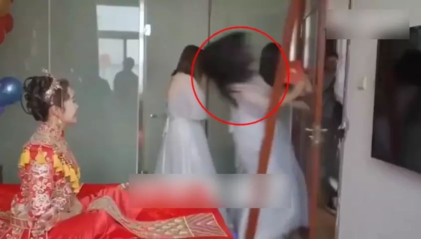 一名伴娘猝不及防被擊個正著