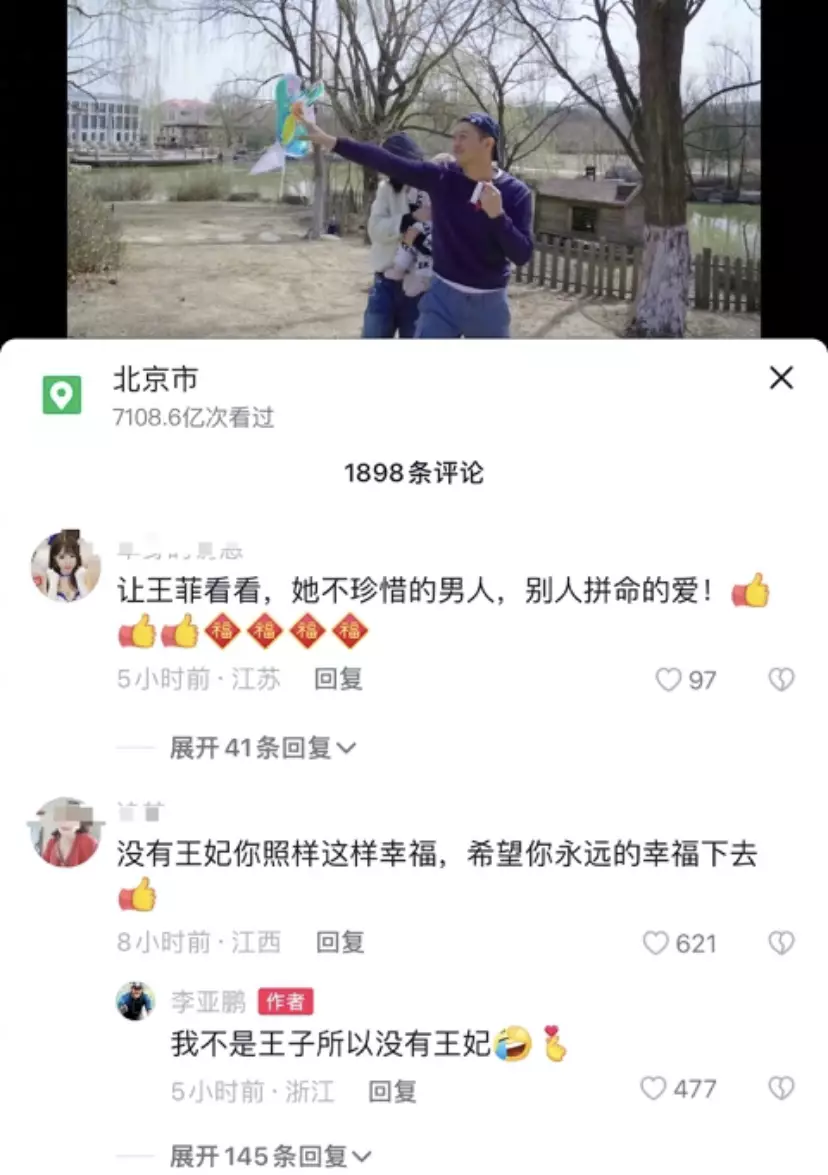 不少網民見李亞鵬覓得人生第二春,都為其感到高興欣慰:「沒有王菲你照樣這樣幸福,希望你永遠的幸福下去。」李亞鵬就回應:「我不是王子所以沒有王菲」,看來他已放下過去,專心與太太展開新生活!