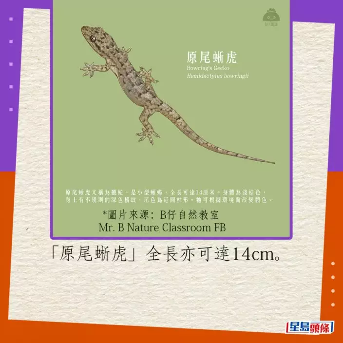 「鋸尾蜥虎」亦在本港家居出現,全長可達15cm。(圖片來源:B仔自然教室 Mr. B Nature Classroom FB)