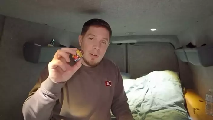 據外媒報道,亞當在YouTube頻道擁有3.18萬粉絲,在他近日分享的影片中,他先介紹自己新買的「三文治機」及車上的各種設備,同時宣布自己將要做一個「臘腸馬芬」當作隔日的早餐。接著他似乎感到肚餓,隨手把身旁零食、點心拿出來吃,當他打開一個朱古力蛋的包裝後驚訝表示「我的天,這個蛋長的好像未來戰士。」