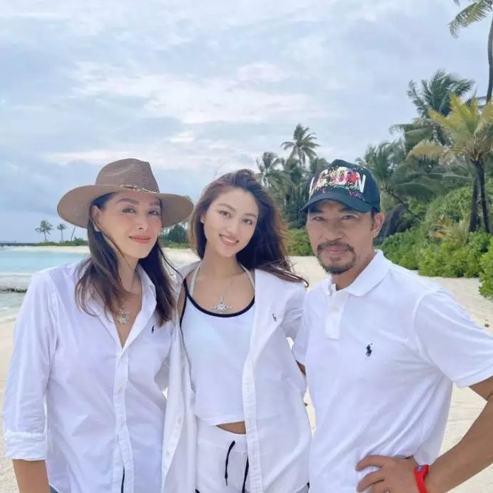任達華一家三口,老婆係超模琦琦(左),囡囡任晴佳係時尚界新寵(中)。