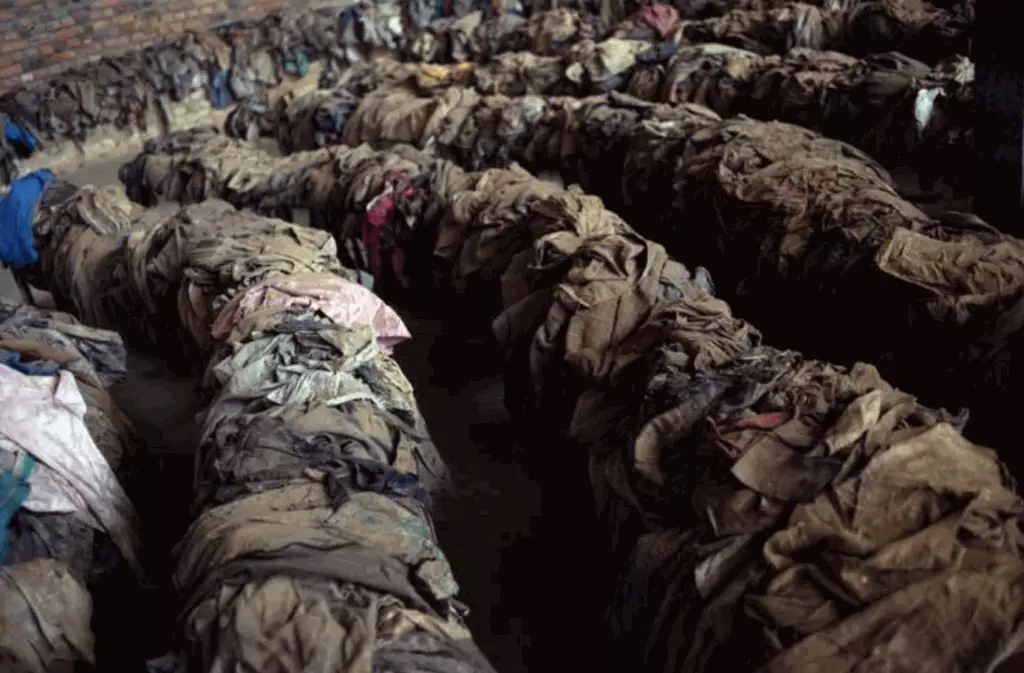 盧旺達種族屠殺事件中的死者衣物。美聯社