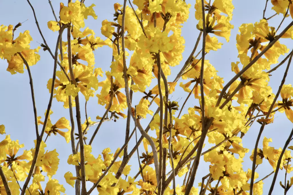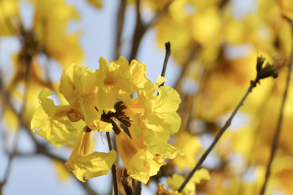 黃花風鈴木花瓣花緣呈現皺摺狀,就如風鈴形狀。