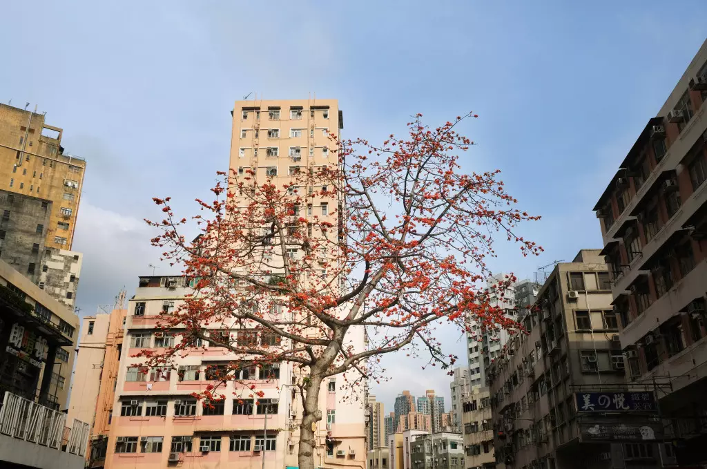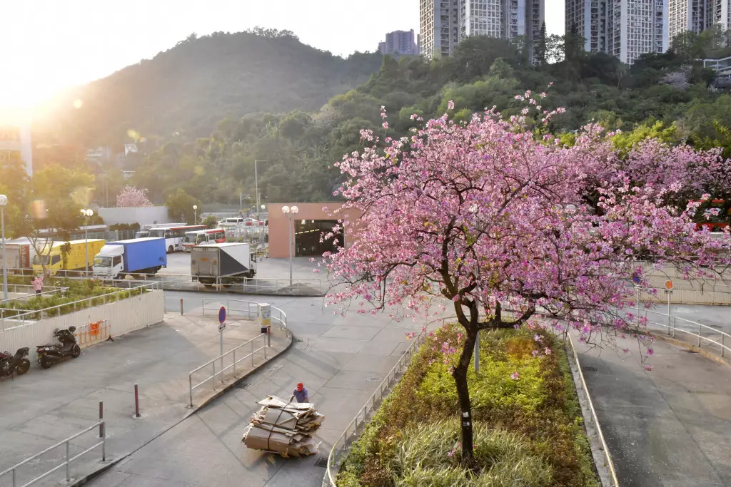 元朗派遞局及朗晴邨對出均種有木棉花。
