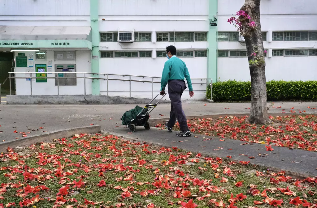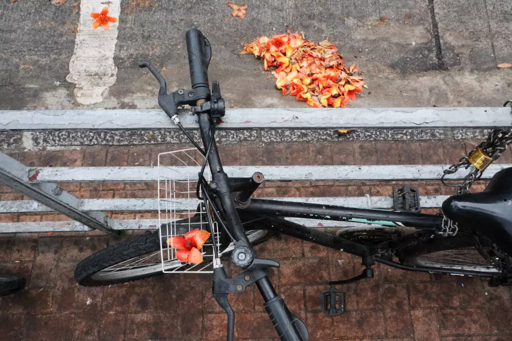 郵差回郵局的必經之路,木棉花花瓣跌了一地。