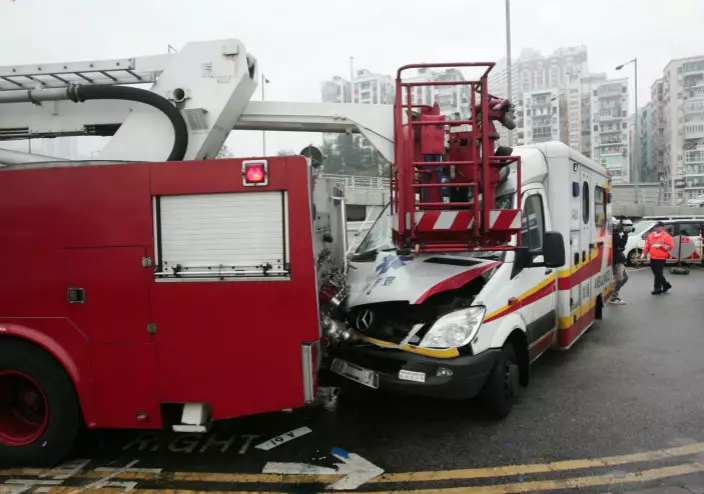 禍不單行,銅鑼灣避風塘一名住在艇上的男子,昨清晨被兄長發現墮海遇溺,詎料首先接報趕抵現場的救護車狂撼消防車,三名救護員和兩名消防員受傷。消防處急調其他救護車增援,墮海男子事發半小時後才送到醫院,證實不治。消防處發言人指,拯救人員抵達現場時,遇溺男子已由其兄長救起並以小艇送到岸邊,消防員將事主抬上岸急救,其間救援工作並無停頓。