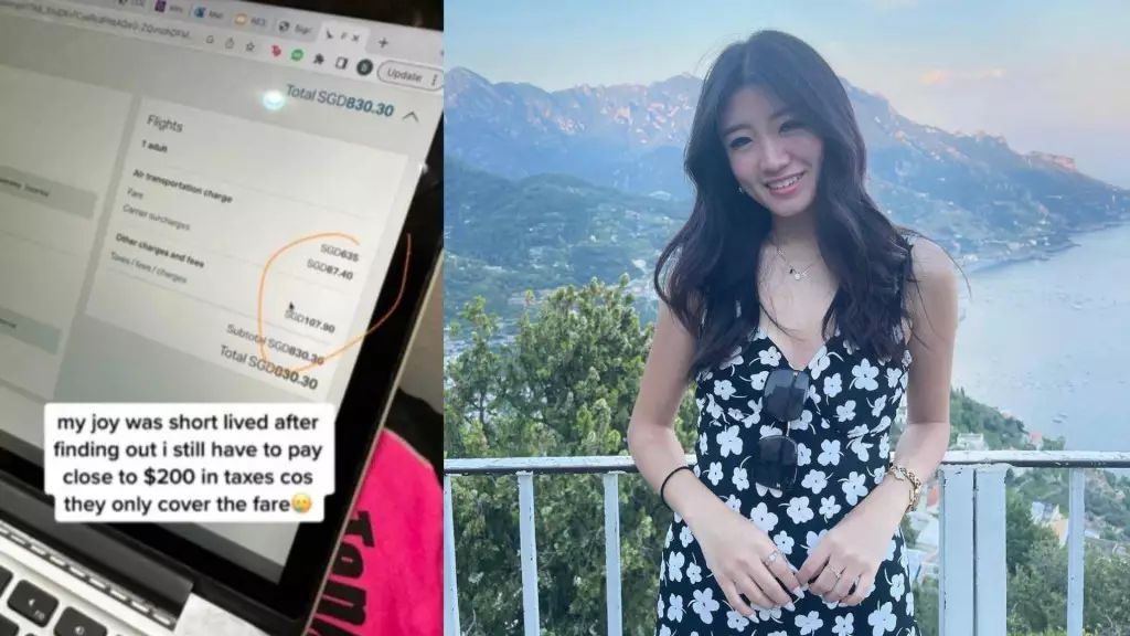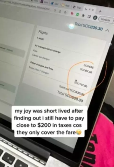 一名新加坡女子在網上指抽中國泰免費機票卻要給200新加坡元稅。IG@badbadbern