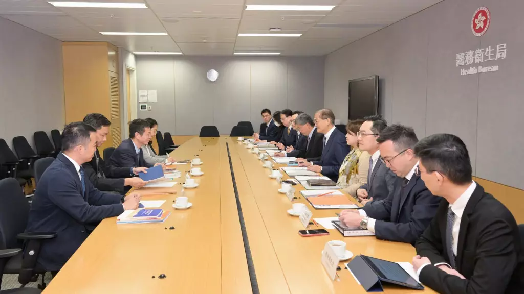 代表團隨後與林文健及該署人員進行深入交流。衞生署代表向代表團介紹本港中西藥以及醫療儀器的規管和發展概況。