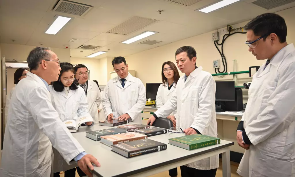 廣東省藥監局局長江效東(右二)到訪由衞生署管理、位於香港科學園的政府中藥檢測中心。政府新聞處