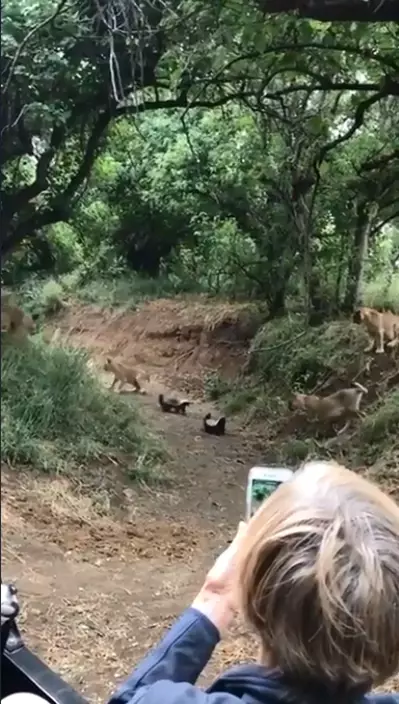 近日,國外一位網友在一片叢林的深處捕捉到神奇一幕,從影片中可見,2隻小小的蜜獾與獅群狹路相逢,牠們在面對10多隻母獅子時卻沒有出現一絲膽怯,甚至輪番上陣,即使在體型上差距甚大。而且其中一隻體型更小,主要是靠體型稍大的作主要進攻,最終獅群竟被牠們的氣勢嚇得不敢貿然靠近。