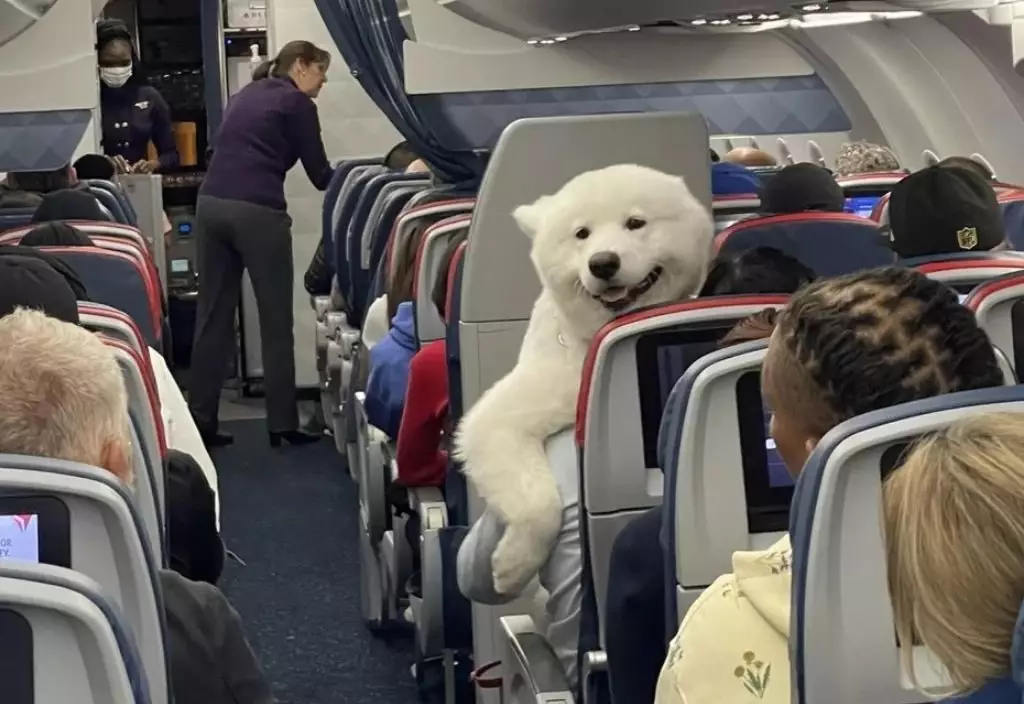 國外網友Nikki Mitchell Solomon於Facebook群組「Dogspotting」分享了一張超級治癒人心的照片,他表示自己飛機客艙待機時,赫然發現自己的斜前方有位截然不同的乘客,咋一看如同一隻北極熊。而樓主仔細一看才發現原來是一隻被主人抱在身上的「微笑天使」薩摩耶犬,那顆超大的腦袋和笑容以及牠可愛的一舉一動令後方的乘客都忍不住被逗了。
