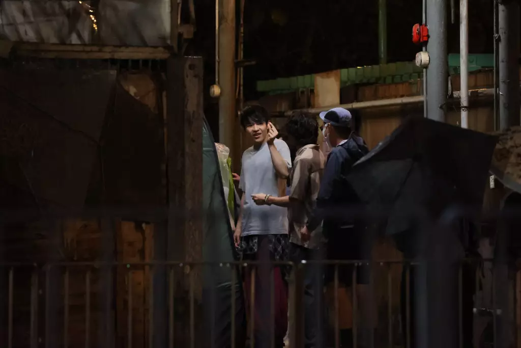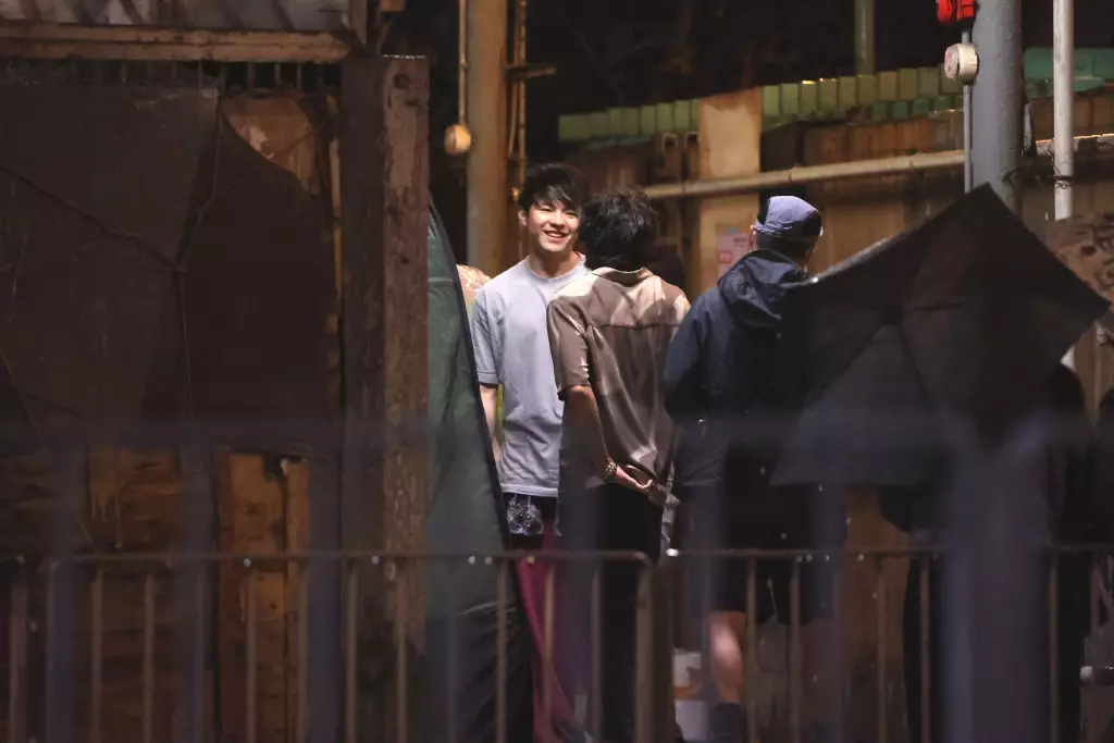 當晚約八時,《冰》劇一眾演員朱鑑然、Locker(林家熙)及黃溢濠等陸續到達觀塘一大排檔進行拍攝,未幾Ian 以一身黑衫現身會合,雖然當晚下著滂沱大雨,但帶着口罩的Ian 亦有與在場數名守候他的Hellosss(粉絲暱稱)點頭打招呼後,才急急腳衝入大排檔 ;之後Ian 除下口罩換上戲服後便火速開工,只見他今次放下溜冰鞋,以一身灰色短袖T恤配紅色長褲便服上陣,腰間綁着一件外套,打扮causal ,頭上更染了幾撮金毛,十分型仔,而在拍攝期間,Ian 都不時與導演討論劇本,非常投入。