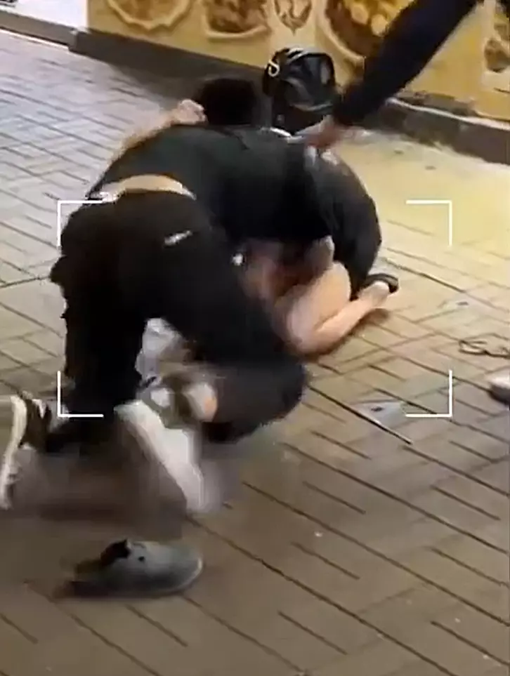 二人在地上纏鬥約半分鐘。fb:香港突發事故報料區