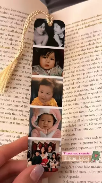 鍾嘉欣收到粉絲送贈的家庭照書籤,加上與家庭有關的書籍,睇書都睇得開心啲。