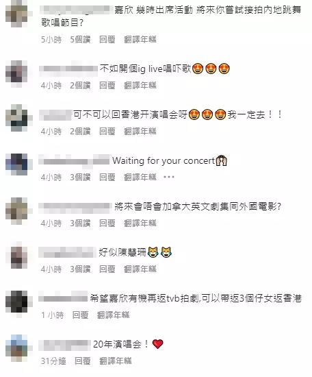 不少網民都希望鍾嘉欣早日復出拍劇!