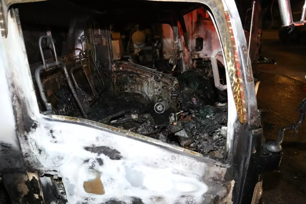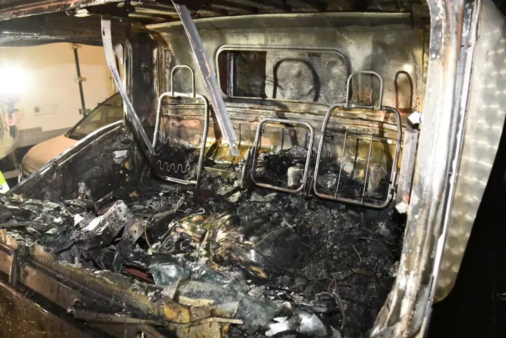 起火車輛嚴重焚毀。