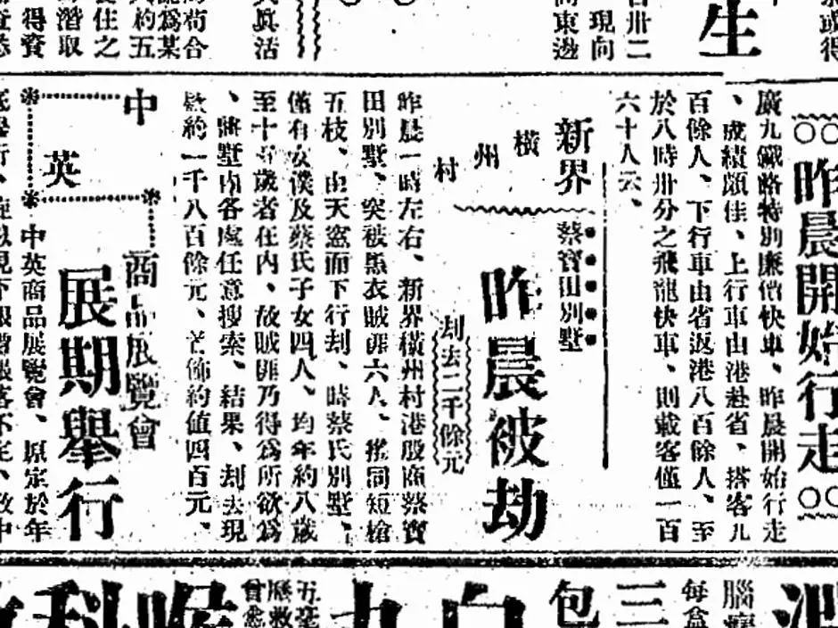 曾有舊報章報道蔡氏大宅被搶劫案件。(香港舊報紙館藏)