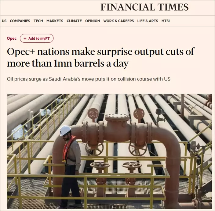 英國《金融時報》分析認為,此次沙特領頭的減產動作「不同尋常」,因為這一消息是趕在OPEC+的正式會議之前宣布的,表明參與減產的國家有一定的緊迫感。此前,美國矽谷銀行倒閉,瑞士信貸銀行在「暴雷邊緣」被本國競爭對手瑞銀集團收購,這些事件都讓外界擔憂全球金融市場危機蔓延和原油需求量大幅下降,導致油價上月隨之大幅下跌。有專家就表示:「OPEC+先發制人地削減了產量,以避免銀行業危機可能導致的需求疲軟。」