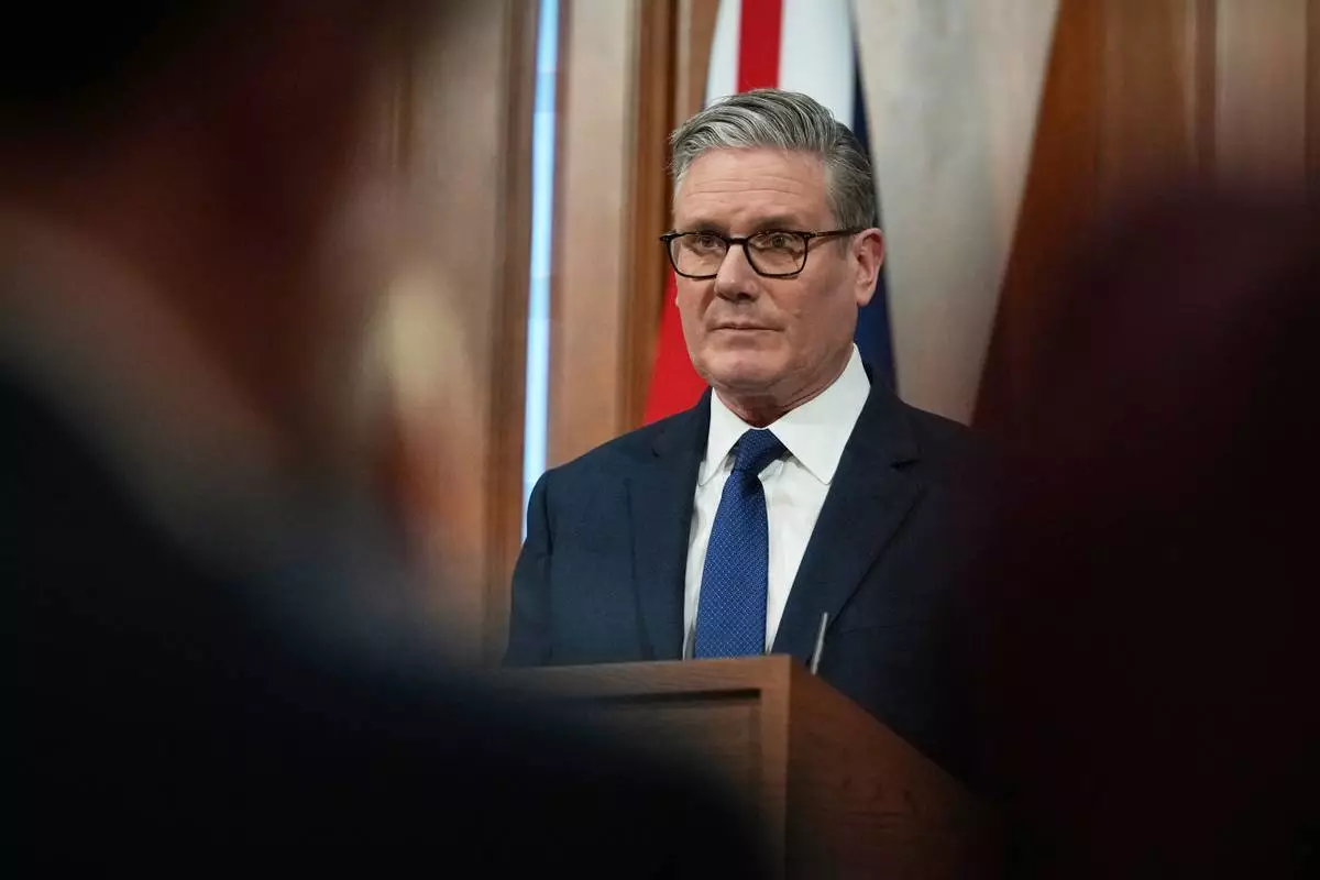 英國首相施紀賢(Keir Starmer)於2026年4月1日周三在倫敦唐寧街舉行記者會上發言。(美聯社圖片/Frank Augstein,Pool) AP圖片
