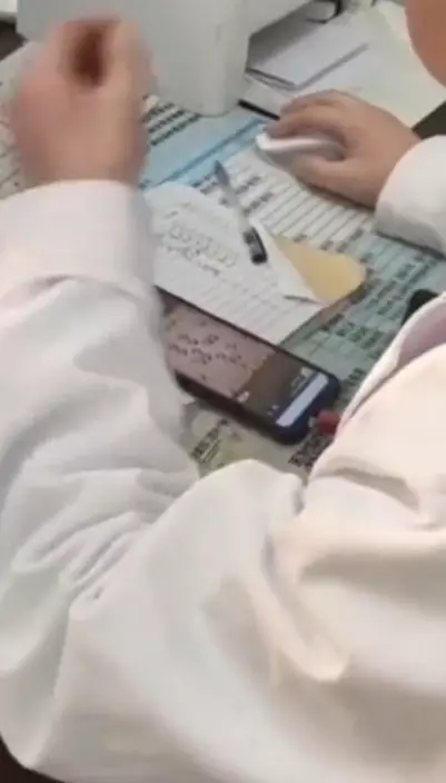 從網上影片顯示,該醫生在給孩子問診的同時,點一點滑鼠,又在自己手機上點一點,而該醫生手機屏幕上,顯示出來的正是一款象棋遊戲。她忍無可忍,將現場拍下來。