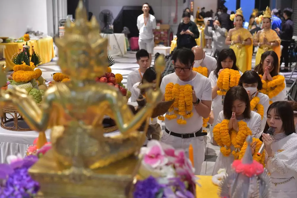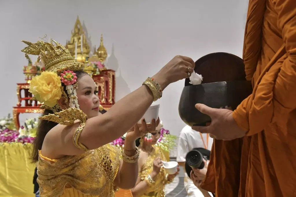 活動5日早上設有供僧儀式,供奉者將會跪拜僧侶,並供奉不同食物,包括泰式香葉炒肉、傳統糕點、大樹菠蘿等等。在浴僧儀式中,供奉者會使用泡有茉莉花的水為僧人浴手,寓意為洗走不幸。在供僧儀式後,參加者均參拜四面神及水龍神。