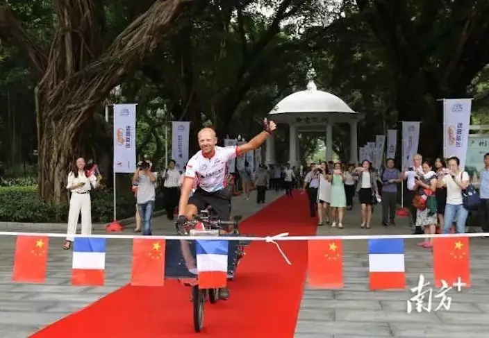 2018年中法「太陽之旅」冠軍抵達終點廣州市人民公園,綠色騎行45天穿越歐亞。