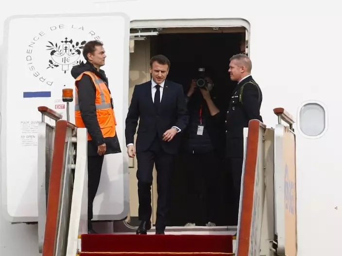4月5日下午,法國總統馬克龍抵達北京。