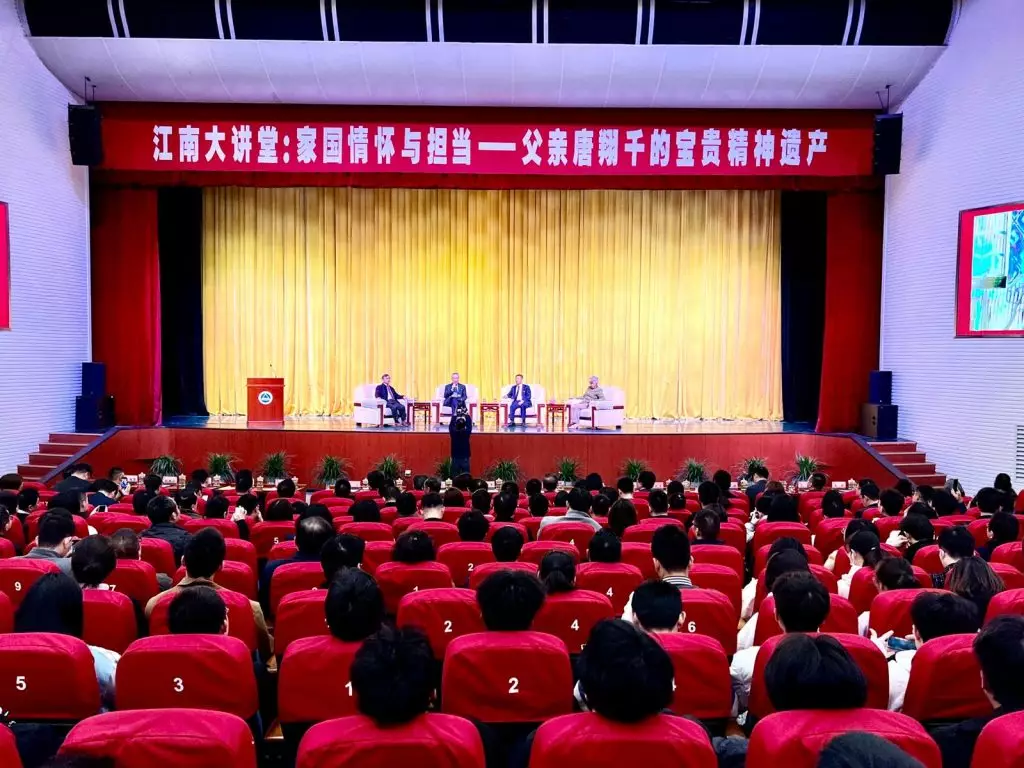 唐英年今日出席由無錫江南大學、無錫市歐美同學會和上海唐君遠教育基金會聯合主辦的「江南大講堂:家國情懷與擔當─父親唐翔千的寶貴精神遺產」分享講座。今年正好是「唐翔千誕辰百年」紀念,唐英年表示,上世紀80年代初期,父親唐翔千連續3屆被推選為全國政協常委。他亦非常榮幸,同樣三度獲委任為全國政協常委,上月出席兩會會議,發揮全國政協的雙重積極作用,並把國家的訊息有效傳遞。今日回到家鄉,亦趁機宣揚兩會精神。