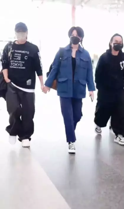 早前王菲與謝霆鋒罕有地拖手現身內地一機場,再現世紀拖手一幕。(微博圖片)