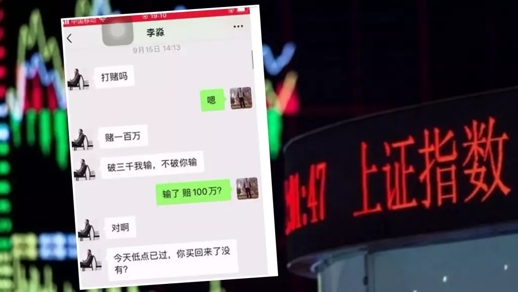 兩人在微信上討論股市時打賭。