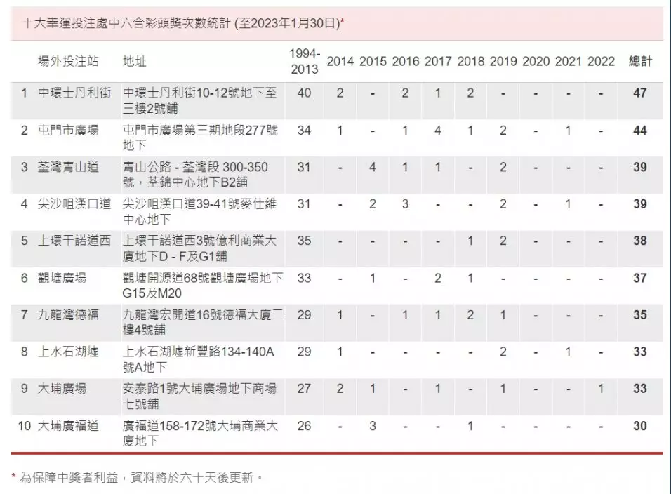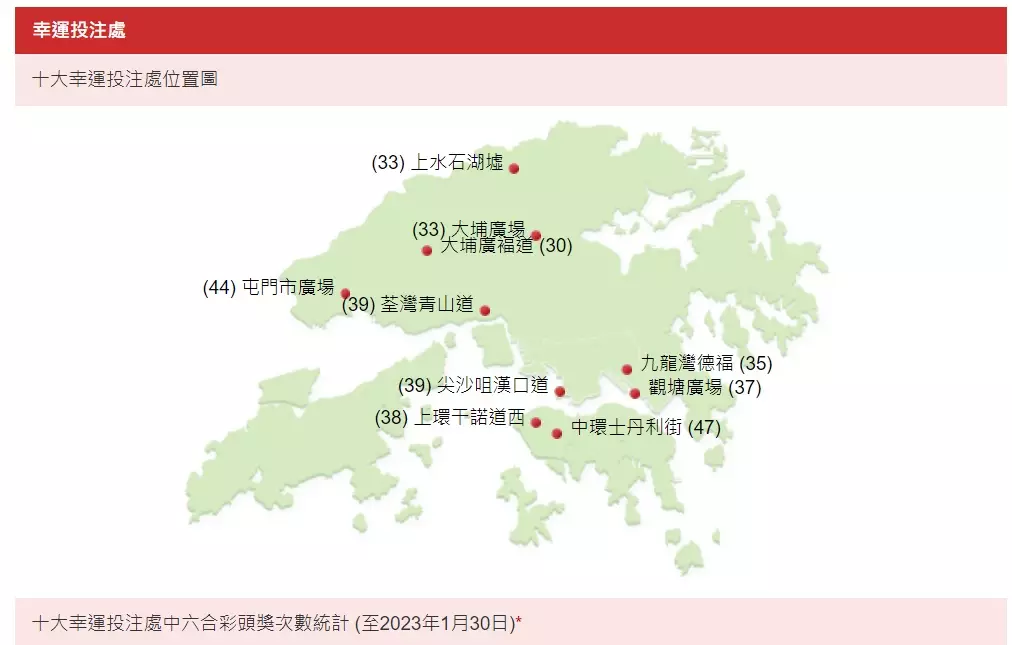而截至今年1月30日,中環士丹利街賽馬會投注站,繼續是全港「最幸運」投注站,曾有47次中六合彩頭獎紀錄。
