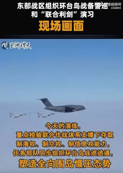 演習現場畫面顯示,接令後,東部戰區陸軍遠箱火,海軍驅護艦、導彈快艇,空軍殲擊、轟炸、干擾、加油等機型,火箭軍常導火力單元等任務兵力,快速向預定區域機動集結,展開作戰部署。今天的演練,重點檢驗聯合作戰體系支撐下奪取制海權、制空權、制信息權能力,任務部隊同步組織環台島戰巡進逼,塑造全向圍島懾壓態勢。
