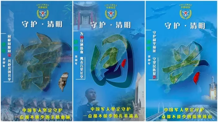 而就在今年清明節期間,東部戰區連續兩日發布追思海報以及國民黨空軍飛行員沈崇誨的漫畫故事,把台灣作為「宗」「國」「興」中的「一點」進行融合式呈現,突出表達中國「一點都不能少」的主權立場、 情感立場、歷史立場。