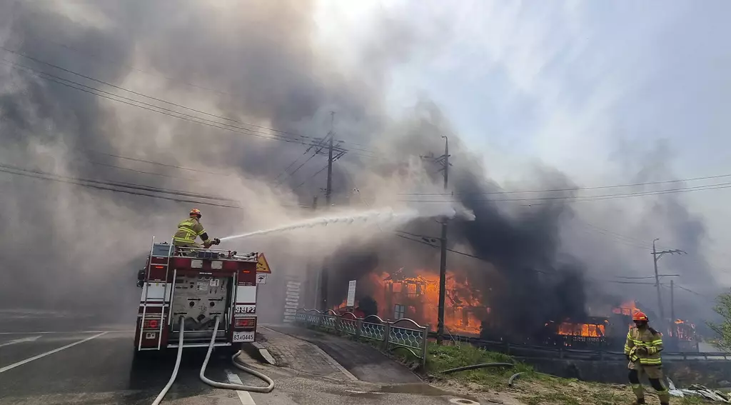 時值春季踏青旅遊時節,南韓東部江原道沿海江陵市周二一早冒出山林野火,天乾物燥加上颱風等級強風助長火勢,大火延燒起碼8小時。當局統計至少1死12傷、70棟民宅與建物損毀,祝融肆虐林地面積已達379公頃,相當於530座足球場,約500名居民緊急疏散。