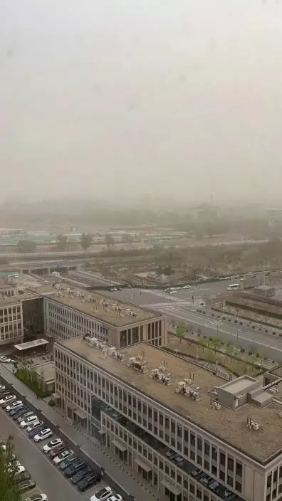 北京沙塵暴,街頭漫天黃沙。 微博圖片