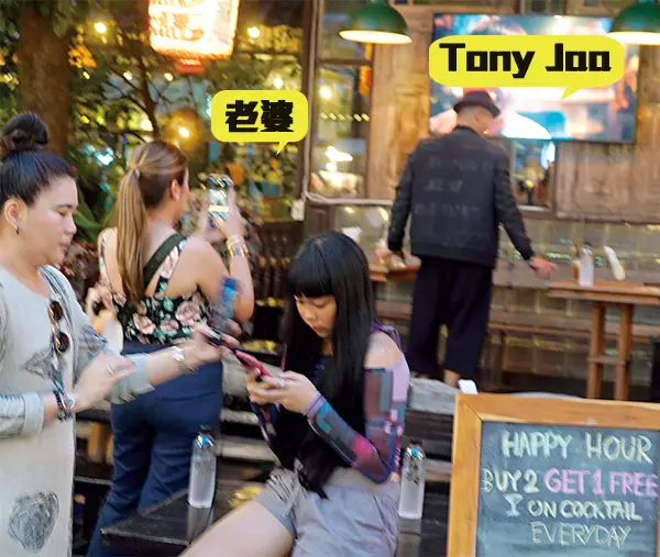 日前,Tony聯同妻女和一名長輩女親友到曼谷一著名巿集遊覽,途經一間餐廳,夫妻一起商量後,才入內。