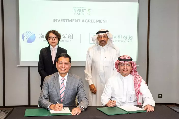 在投資部部長哈立德•法利赫(Khalid Al-Falih) 和海昌海洋公園執行董事曲程的見證下,副部長阿馬爾•阿爾塔夫 (Ammar Altaf)和海昌海洋公園亞太區行政總裁金民豪在沙特阿拉伯舉行的特別儀式上,簽署了諒解備忘錄。雙方的重要官員和代表均出席了該活動。