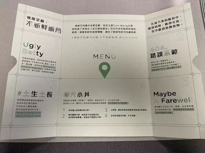 成餐飯可說是非常有構思和創意,都是在傳揚可持續飲食的理念,雖然領展這個「不新鮮飯局」只招待傳媒,並不對外。但是領展「可持續未來館」將從4月23日開始對外開放。在樂富商場3樓,屆時市民可以一家大細去參觀。