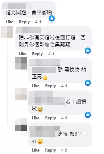 有網友作專業分析,「除非你有支燈喺後面打燈,否則畀你個影遮住黑鼆鼆」。一見生字「鼆」,網友即岔開話題,大讚「勁,黑忟忟的正寫」。至於自備藍膠箱的蹲式大法,則被網民形容為「人才」。