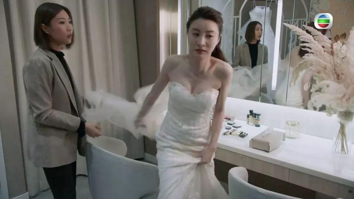 相關場口重點自然落在著婚紗的薇薇身上,皮膚白滑的薇薇,穿上婚紗後仙氣十足,並將其葫蘆身段表露無遺。除了線條出眾,薇薇的靚鎖骨亦吸引網民點讚。其實薇薇在《法言人》中的打扮絕對驚喜又多變,其中一集除了一套低胸、一套大露背婚紗,還有All Back被淋Look、鮮橙悠閒Look、純白套裝Look及一般 OL Look,一晚至少6個造型,相當吸睛,其中All Back Look更獲讚亮麗。薇薇的人設亦贏得網民正評,尤其不開心拿著凍飲對著金師爺「扭計」一幕,不但語氣嬌嗲、表情亦很嬌俏,令不少網民甜到入心:「有個人咁樣扭自己計都幾冧」。