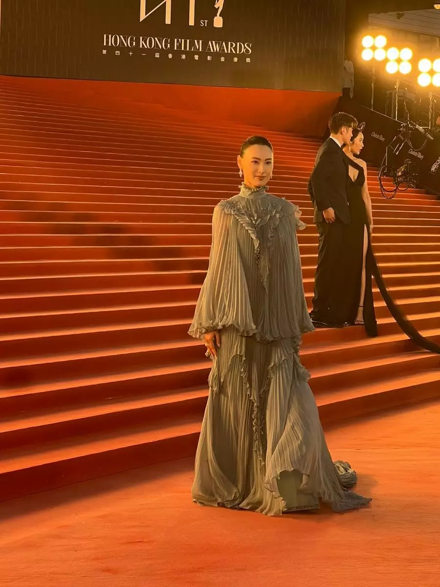 梁洛施身穿淺藍色長裙現身金像獎,似足仙女的飄飄長裙。